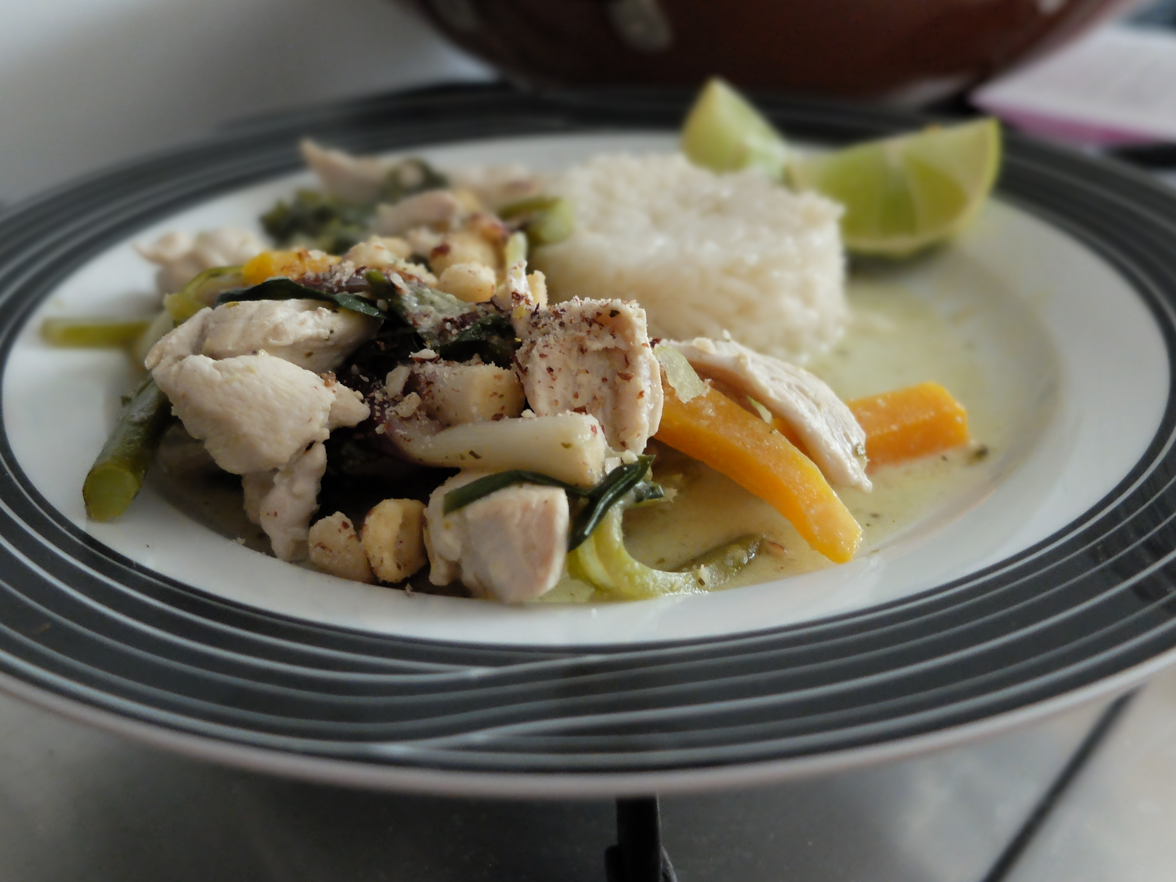 Speed is the name of the game. I could easily spend all evening in the kitchen, but like everyone else time constraints (mainly my full time office job plus studying) limit food preparation time. I guess this Thai green curry could be considered a cheat meal, but it’s also easy, speedy and above all tasty!