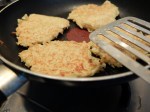 Peel and grate the potato and parsnip, pop into a bowl with the flour and a beaten egg. Season, mix together then fashion into 2 Rösti shapes. Heat a pan, spray with Frylight and cook for around eight minutes. Meanwhile, heat a saucepan of water to simmering point and add an egg, simmering for approx. 3 minutes (for a dollop of yolk porn).